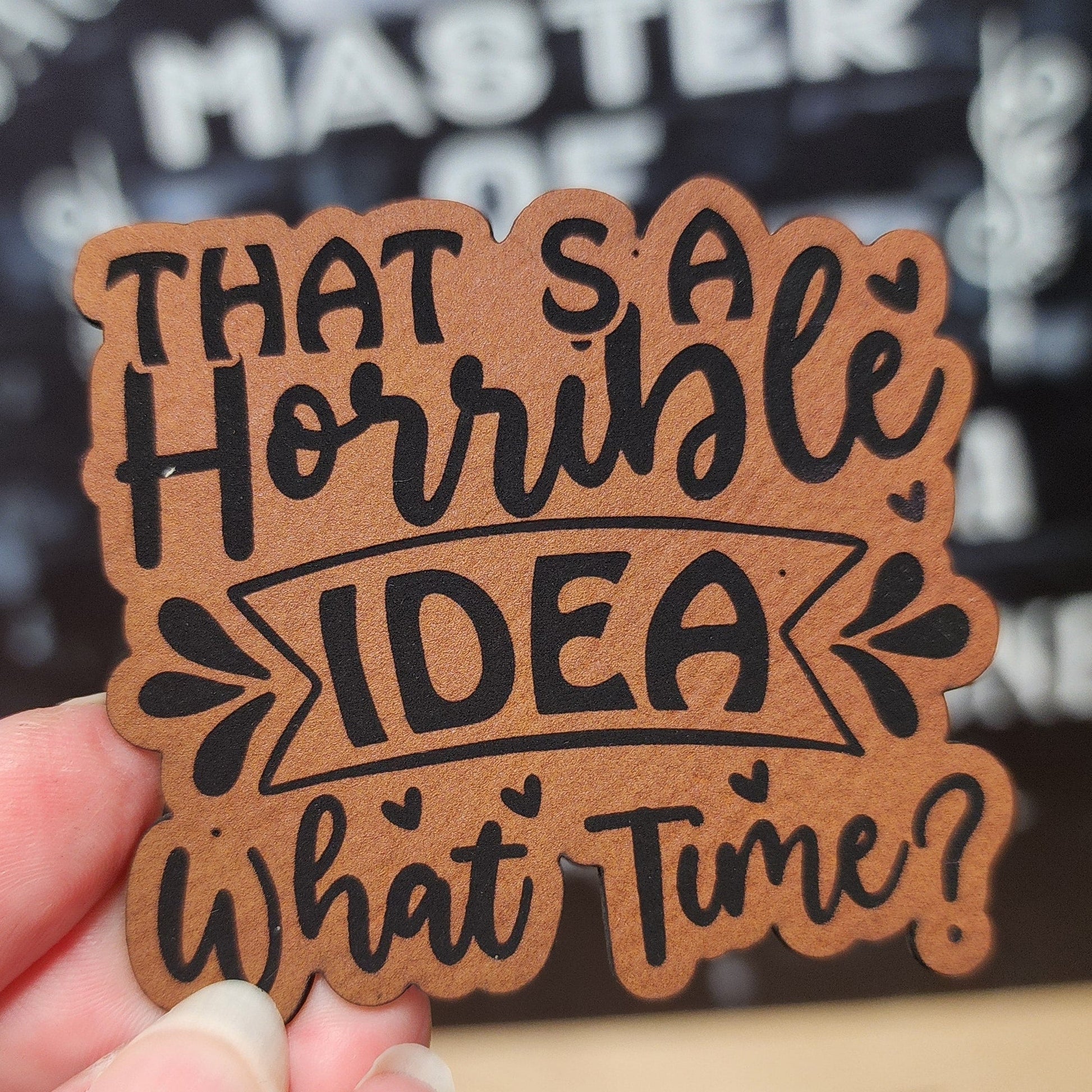 Bad Idea What Time (Rawhide) Engraved Leatherette Hat Patch - MR01
